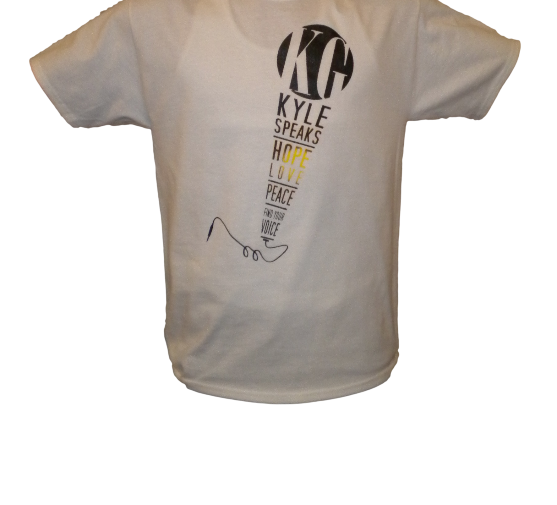 The Kyle Speaks "Find Your Voice" Tee features the Kyle Speaks Logo. He speaks Hope, Love, Peace, and desires for you to Find Your Voice.